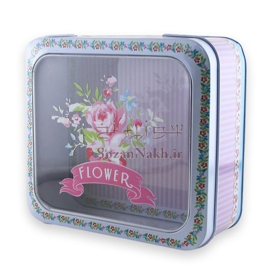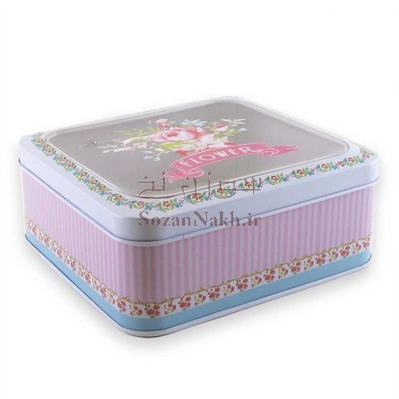جعبه فلزی مربع لولادار راه راه صورتی _ کد 635