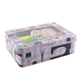 جعبه فلزی مستطیل چهارخانه صورتی _ کد 639